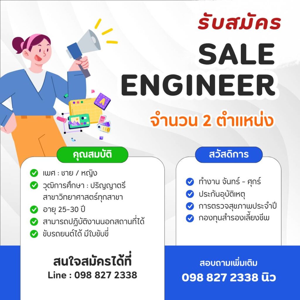 รับสมัครงาน ตำแหน่ง SALE ENGINEER จำนวน 2 ตำแหน่ง