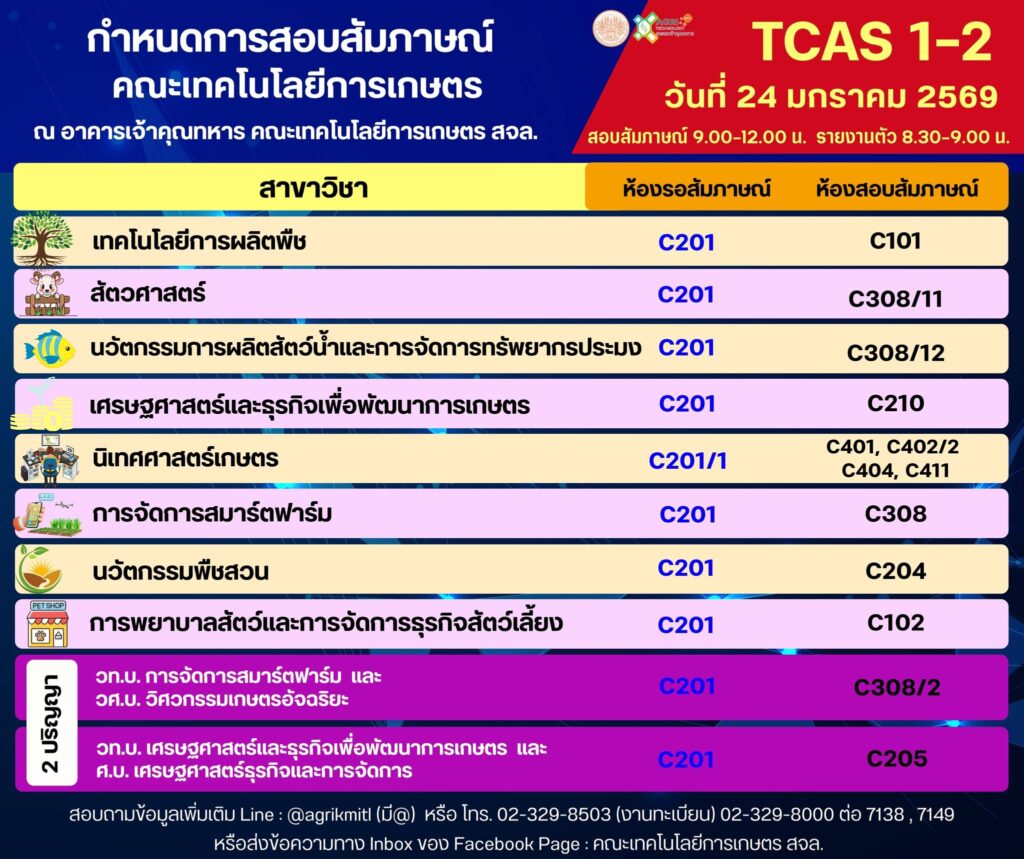 เสาร์ 24 มกราคม 2569 เตรียมพอร์ตที่เธอมั่นใจว่าดี เตรียมคำตอบที่เธอมั่นใจว่าใช่ พร้อมกันทุกหลักสูตร ที่อาคารเจ้าคุณทหาร คณะเทคโนโลยีการเกษตรBy Thapana / 22/01/2026
