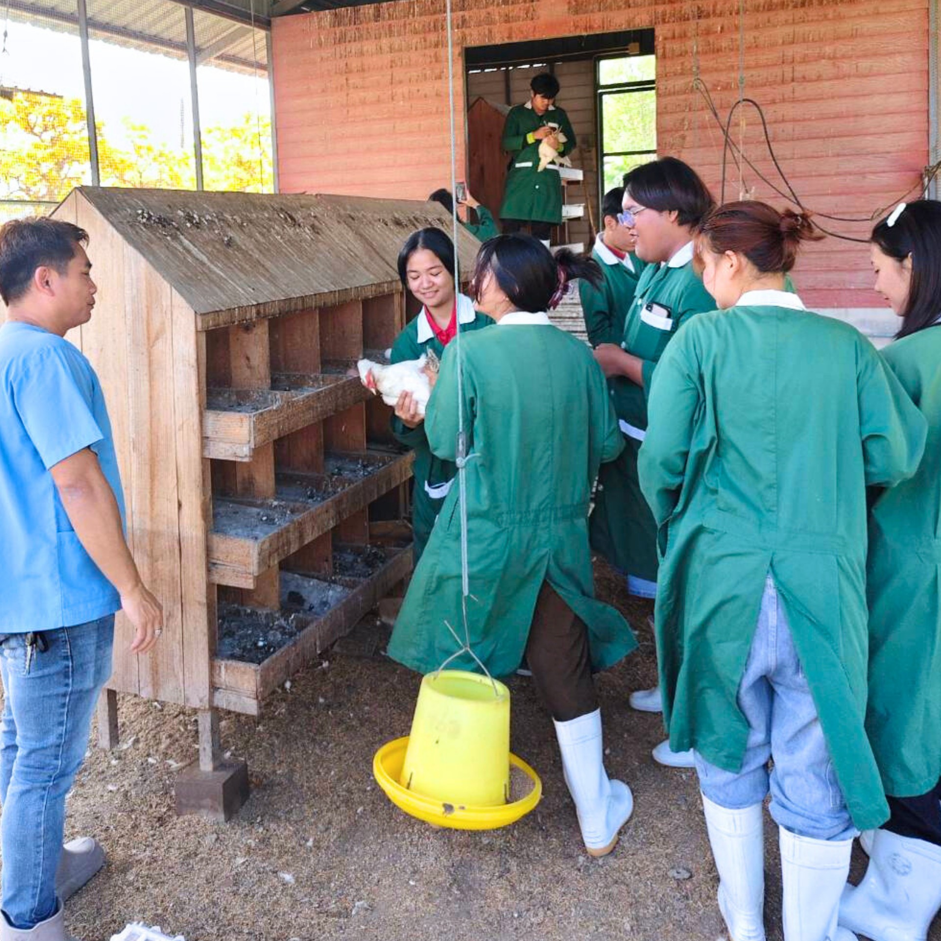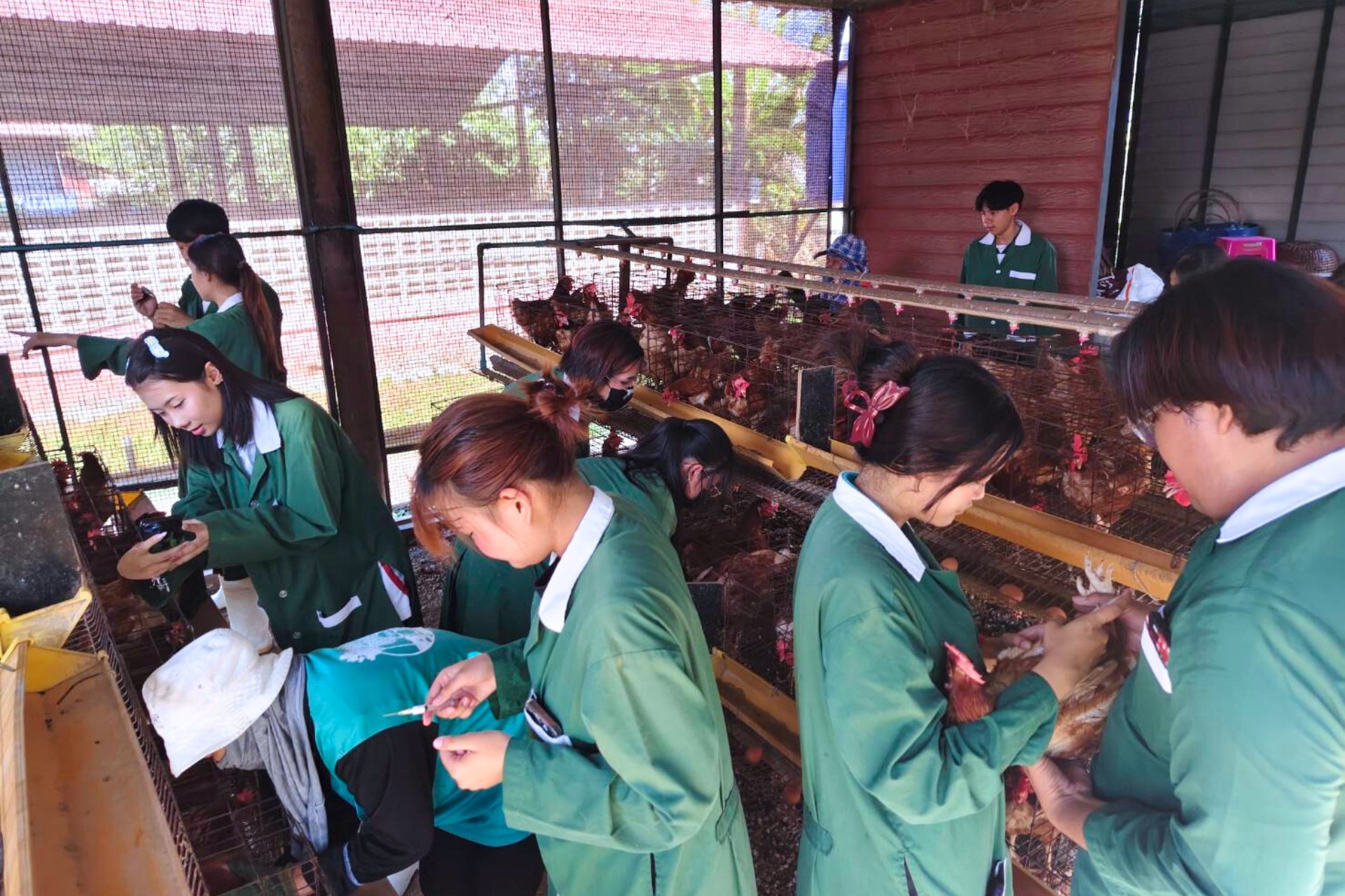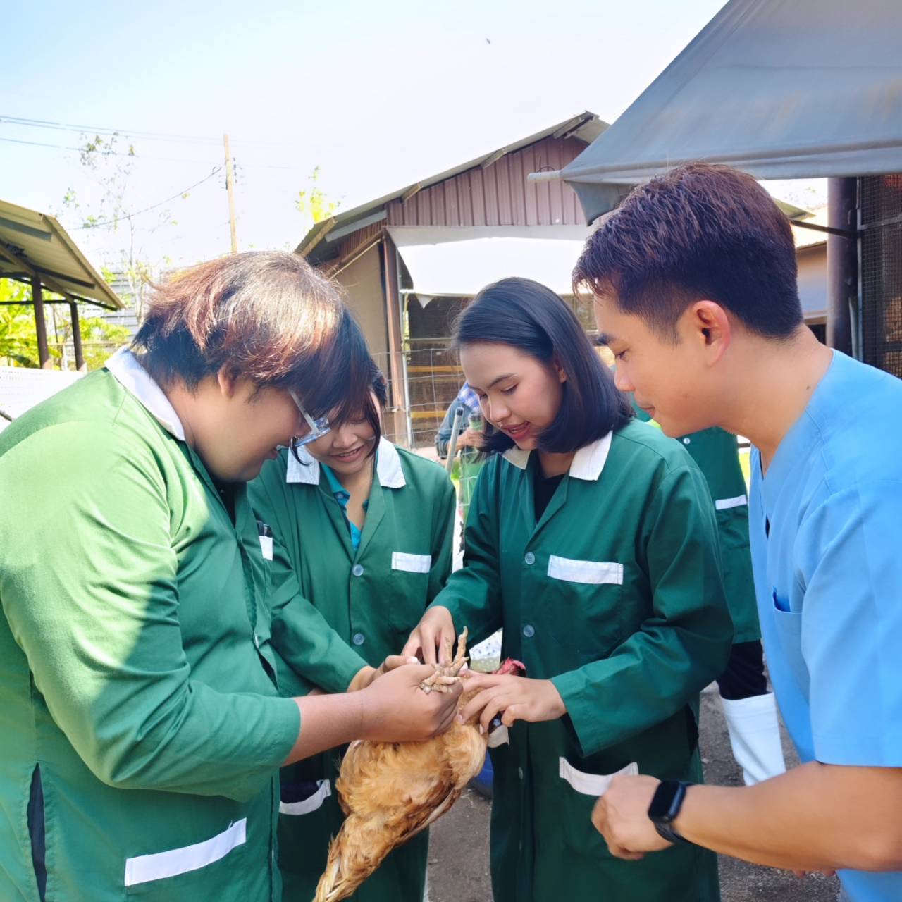 พี่ๆปีแก่ที่จบไปแล้ว มาร่วมด้วยช่วยกันอาสาพัฒนาฟาร์ม แชร์ประสบการณ์ค่ายฯ ฝึกทักษะพื้นฐานทางสัตวศาสตร์ด้านต่างๆ เช่น ผสมอาหารสัตว์ หมักหญ้า ให้วัคซีนแก่สัตว์ต่างๆ เช่นไก่สวยงาม ไก่ไข่ สุกร ภายในฟาร์มฯ รวมถึงการจัดการสุขาภิบาลฟาร์มสัตว์ทดลอง ตามหลัก biosecurity ให้กับน้องๆ ปี 1 ปี 2 สำหรับสัปดาห์ที่ผ่านมา (1 มี.ค. 69) เริ่มด้วยการทำวัคซีนให้ไก่