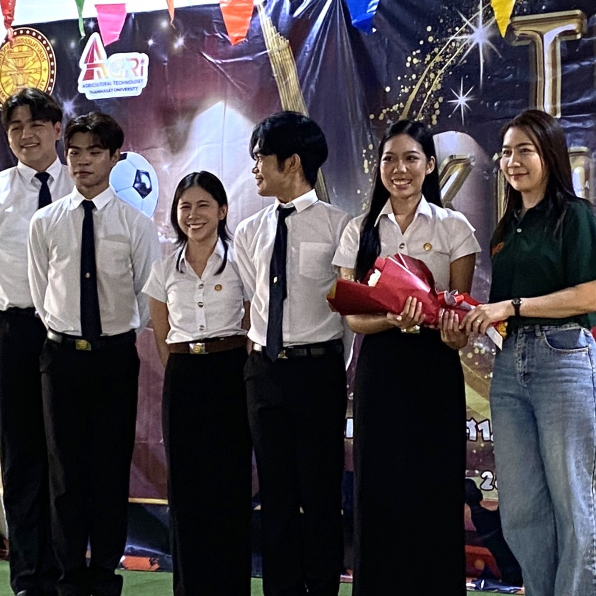 นายวุฒิชัย ศรพรหม งานกิจการนักศึกษา พร้อมด้วยนักกีฬาของคณะเทคโนโลยีการเกษตร